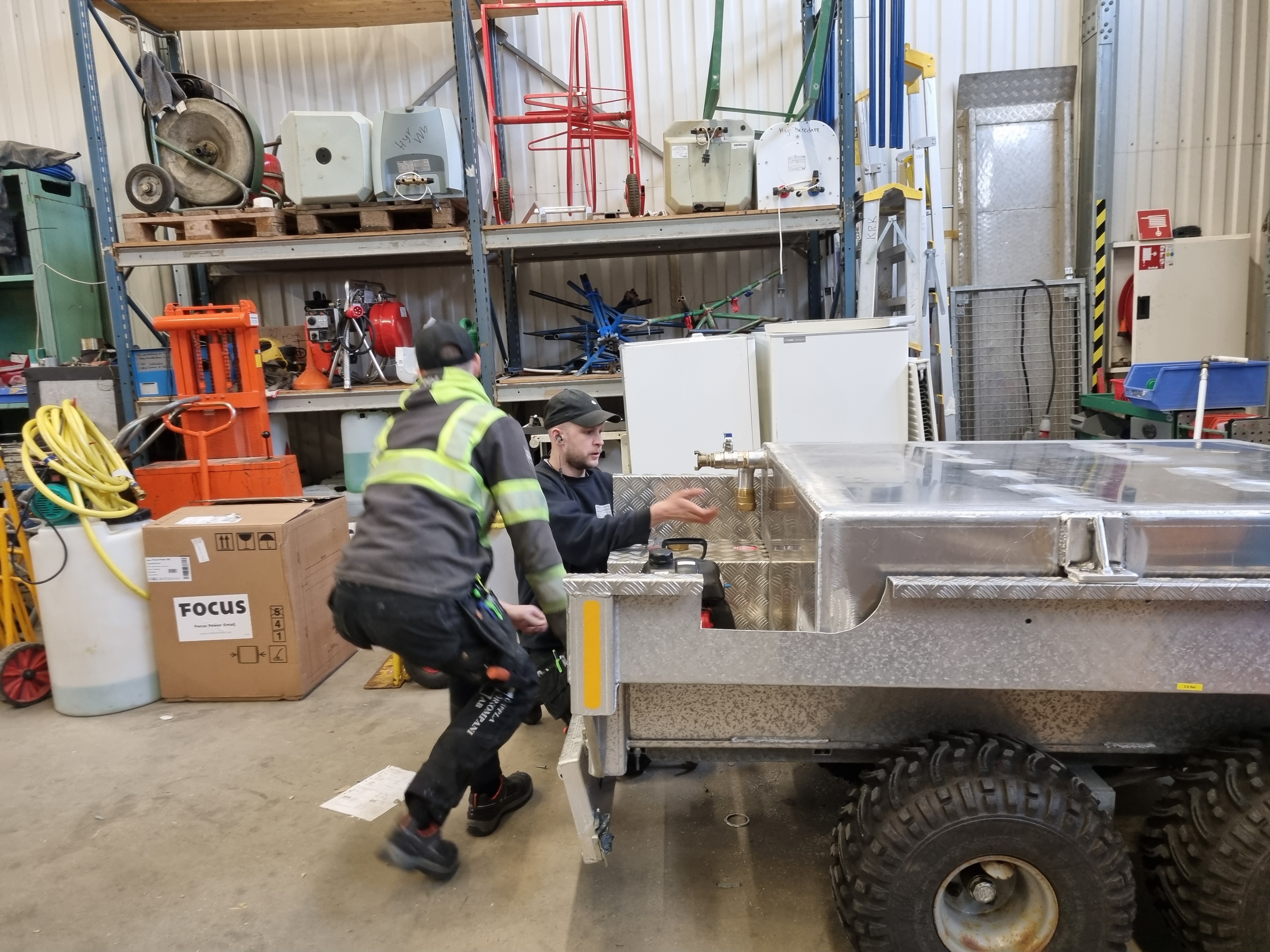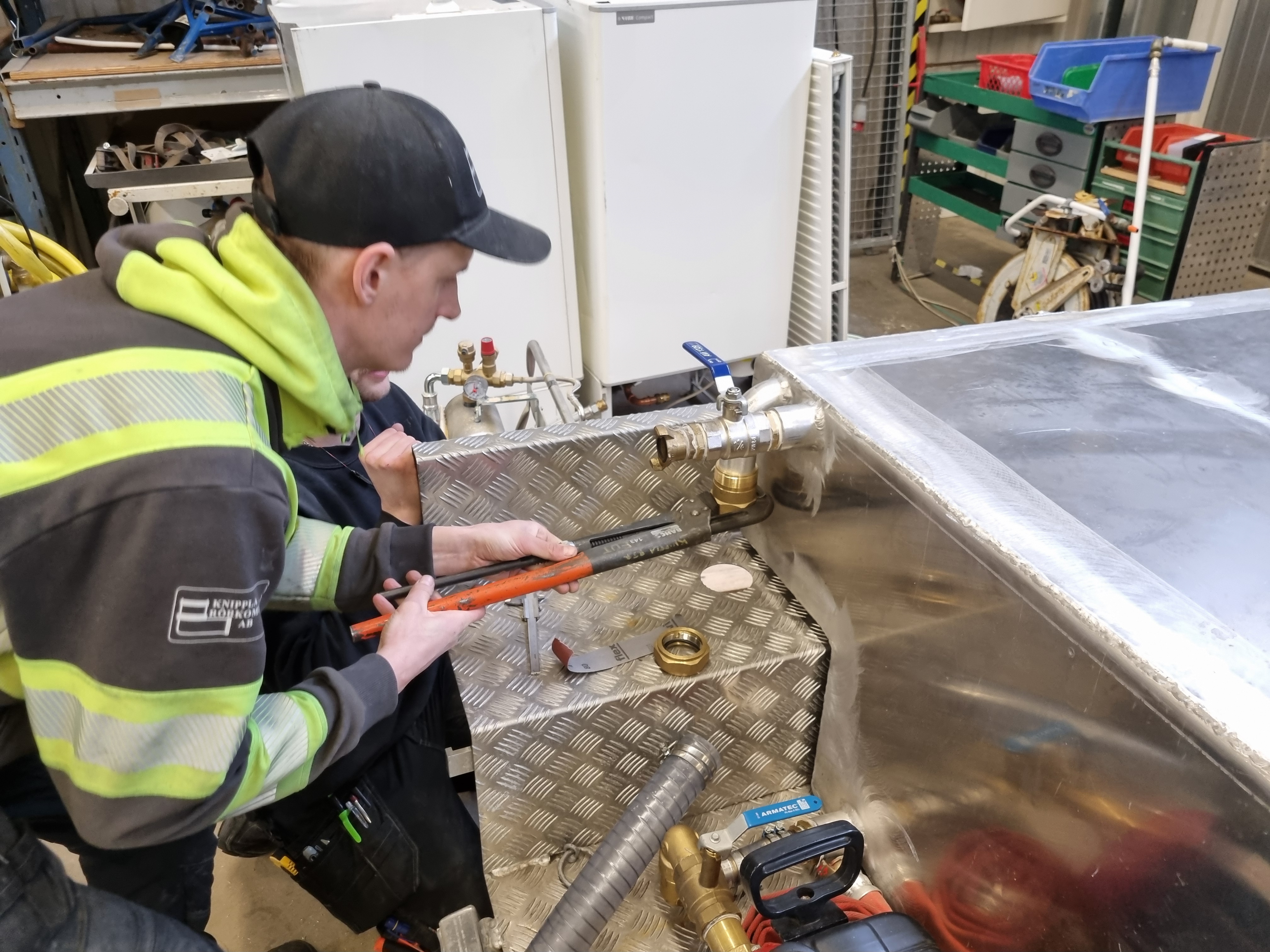 Räddningstjänstens nya vattentank på hjul, behövde kompletteras med anslutning/avtappningsventil.